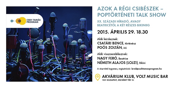 „Április 29-én Nagy Feró és Németh Alajos (Lojzi) lesznek a vendégeink. Megvitatunk néhány szóbeszédet, meghallgatunk néhány dalt, lábjegyzetet készítünk a XX. századi híradóhoz. Már most sokan találgatják, hogy a baboskendők el tudják-e vajon takarni a sokat mutató kétrészes fürdőviseleteket. Minden, a téma, vagy a korszak iránt érdeklődő, nosztalgiázni vagy éppen tartalmas kikapcsolódásra vágyó, egykori és jelenlegi rajongót szeretettel várunk” – mondta Vass Norbert, a program szervezője, a Cseh Tamás Program Könnyűzenei Örökség alprogramjának koordinátora.