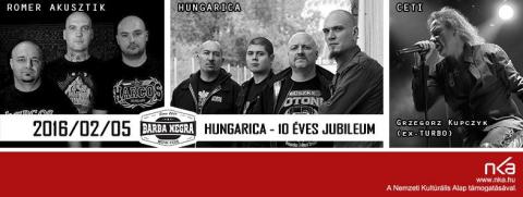 A Hungarica 10 éves jubileumi nagykoncertje 2016. február 5-én, pénteken kerül megrendezésre a budapesti Barba Negra Music Clubban. A zenekar méltóképpen szeretné megünnepelni a jubileumot, számos sztárvendéget meg is hívtak azok közül, akikkel az elmúlt tíz évben együtt dolgoztak, közös dalokat készítettek, valamint akiknek zenei stílusa leginkább formálta a Hungarica arculatát.