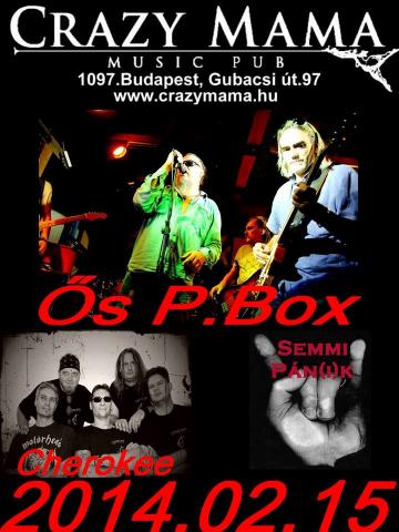 Február 15-én, a Sáfár Öcsi által fémjelzett Ős P.Box zenél a Crazy Mama színpadán. A zenekar 2010-ben lemezt is megjelentetett, melyre 12, a P.Box hagyományokat folytató remek nóta került. Akik anno rajongtak ezért a stílusért, most nem fognak csalódni. Ezen az estén két vendégzenekar melegíti be a Crazy Mama színpadát. A Semmi Pan/i/k és a második lemezén dolgozó Cherokee. A buli este 9-kor kezdődik, az eseményhez pedig itt tudtok csatlakozni: